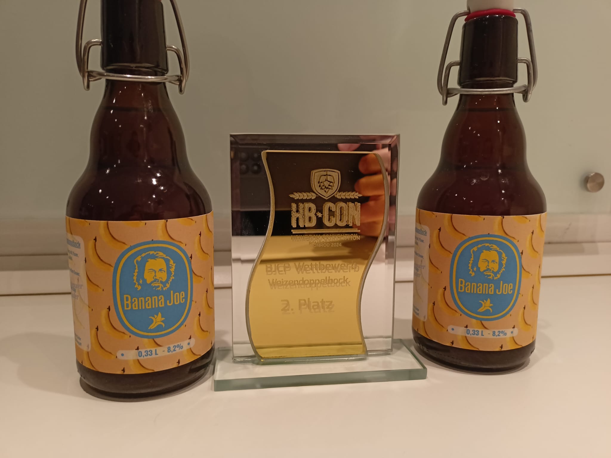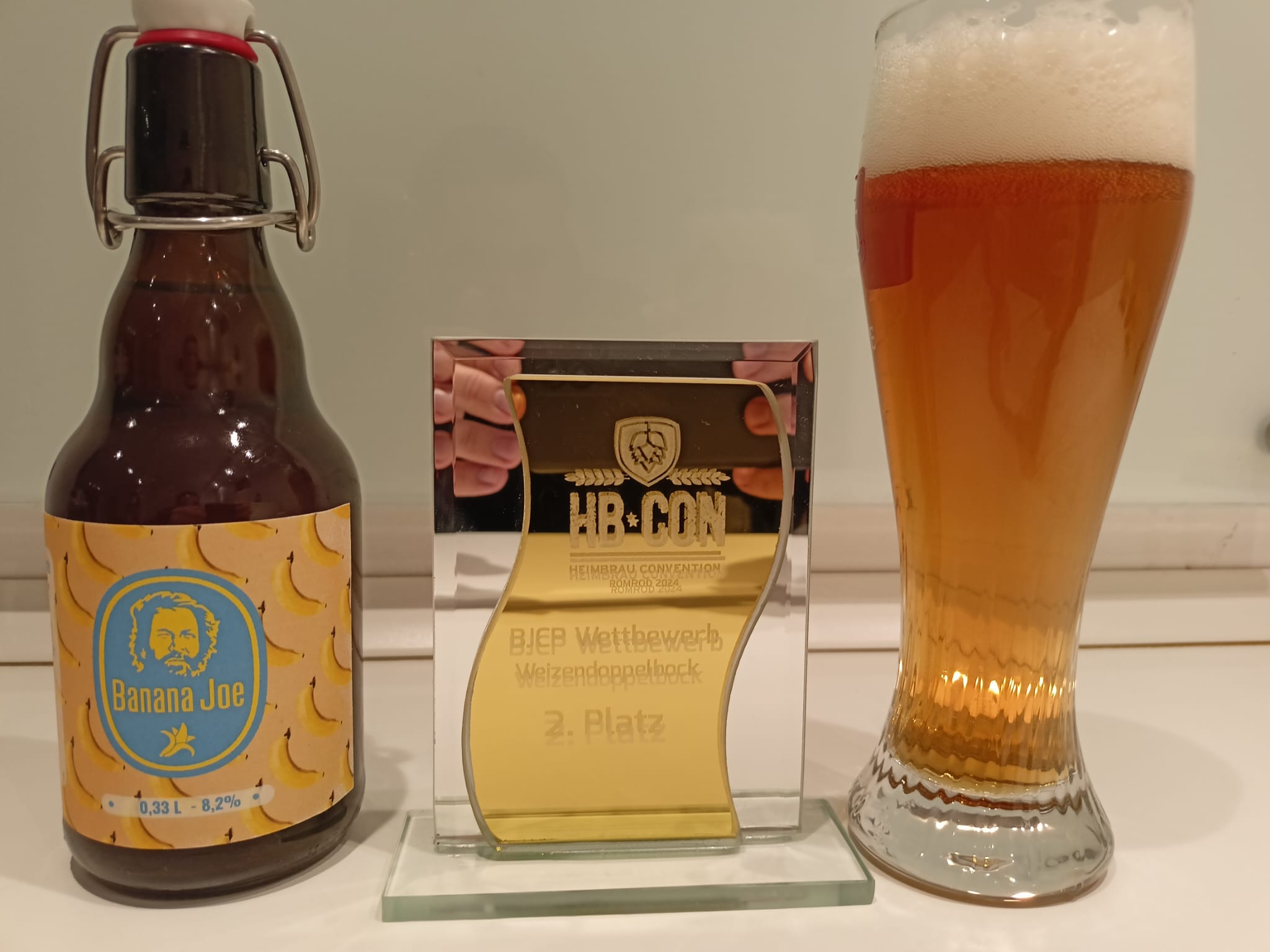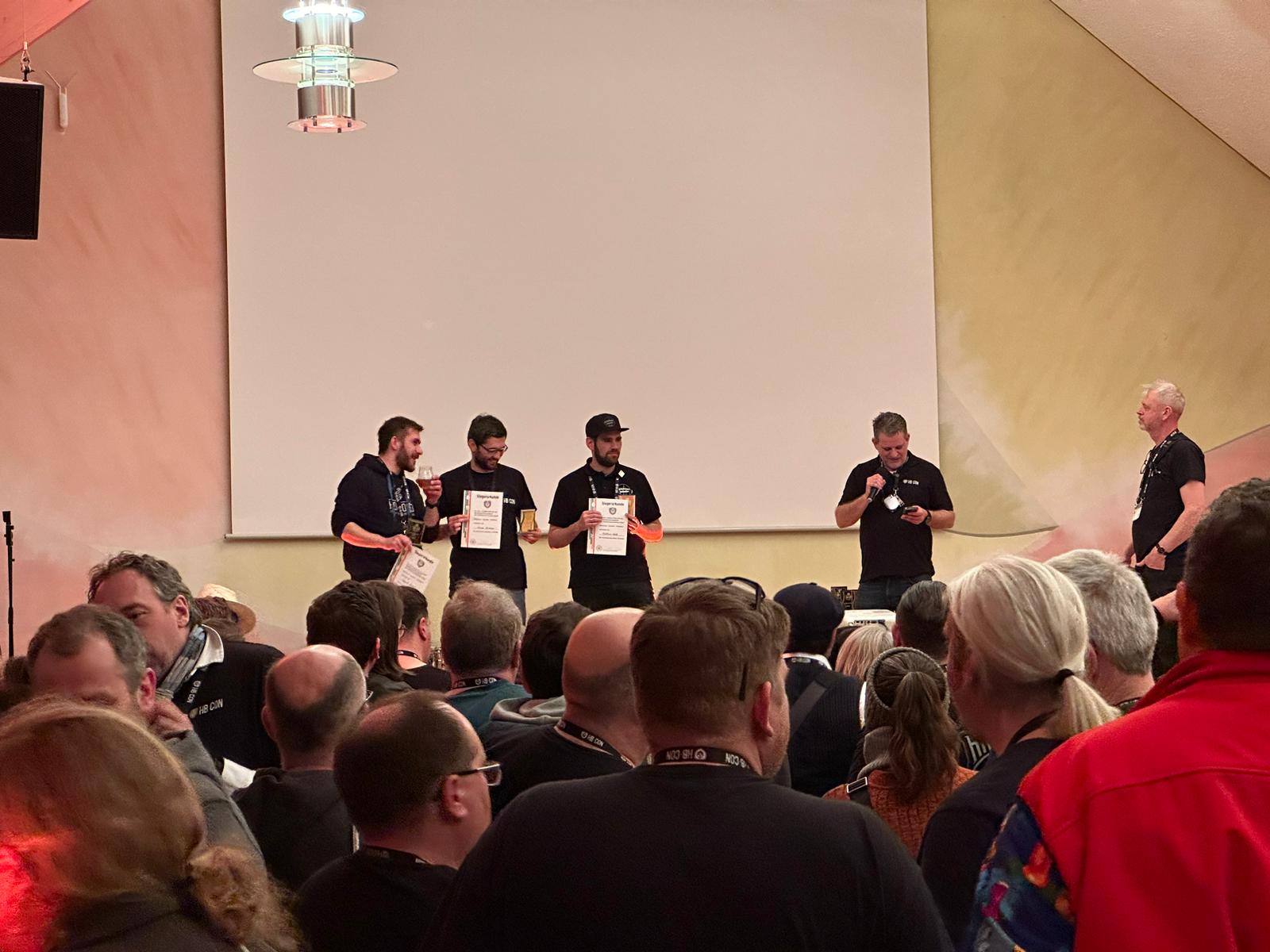 Unser Highlight war aber sicher der zweite Platz beim BJCP-Wettbewerb „Heller Weizendoppelbock“. Unser Banana Joe konnte die Jury mit seinem Punch an Banane überzeugen und musste sich nur knapp dem Gesamtsieger der Kategorie geschlagen geben. Neben renomierten Brauern aus der Szene auf der Bühne zu stehen und einen Preis dafür zu bekommen war ein tolles Gefühl. Der einzige Wermutstropfen an dieser Stelle: unser Vorrat an Banana Joe war bereits ausgetrunken – er hat uns zu gut geschmeckt! Das Rezept zum Bier findet ihr hier: